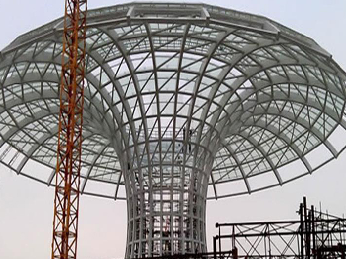 二、球形网架结构因其结构新颖,受力合理,自重轻、用钢量低等优点。如大型体育场馆球形南开螺栓球网架、公共场馆球形网架、电厂南开螺栓球网架、水泥工业球形网架、仓储物流球形网架、南开干煤棚工业球形网架、南开收费站南开加油站球形网架、展览中心、影剧院、商场、航站楼、候车厅、工厂南开车间、仓库、电视塔等球形螺栓球节点网架。国内球形网架结构主要分为:南开焊接球节点网架及螺栓球节点网架两种。螺栓球节点网架其构件工厂内加工量较大,现场安装便捷,适用于现场工期紧,南开施工条件、用电量受制约,网架形状复杂、南开杆件定位困难的异形结构。螺栓球节点球形网架系统基本由南开杆件、螺栓球、支撑支座等组成。按照节点形式可分为交叉南开桁架体系、四角锥体系、三角锥体系等。支撑方式多为固定支座支撑。对于大面积、大跨度及有特殊受力或伸缩要求的网架结构可采用橡胶支座、滑移支座、球铰支座等支撑形式,以满足结构自身的受力稳定、均衡,便于内力释放等设计要求。
